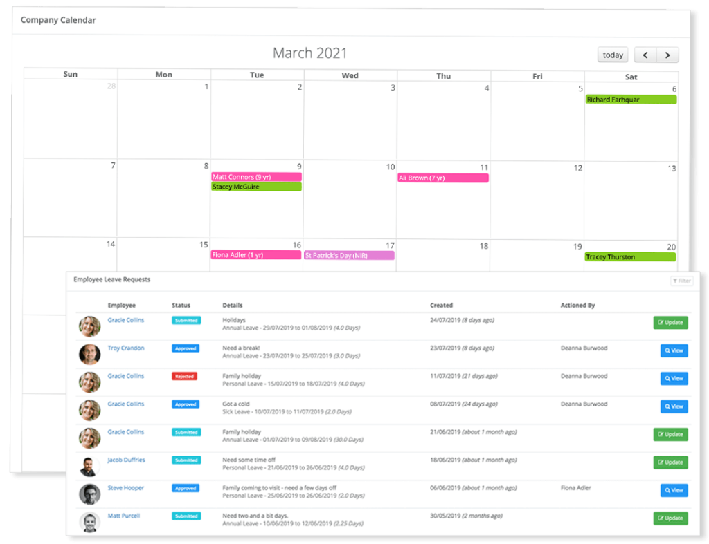 • Yıllık izin, hastalık izni ve diğer tüm türlerin kolayca tanımlanabilir olması